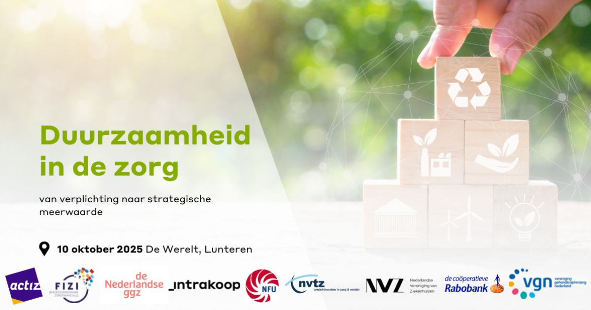 Duurzaamheid in de zorg is geen keuze meer, maar een noodzaak. Dit brengt uitdagingen met zich mee, maar biedt ook waardevolle strategische kansen. Tijdens het duurzaamheidsevent ‘Duurzaamheid in de zorg: van verplichting naar strategische meerwaarde’ op vrijdag 10 oktober 2025, de Dag van de Duurzaamheid, zullen we deze kansen uitgebreid bespreken en belichten. We nodigen je van harte uit om samen met ons te ontdekken hoe duurzaamheid een krachtig strategisch voordeel kan worden voor jouw zorgorganisatie.