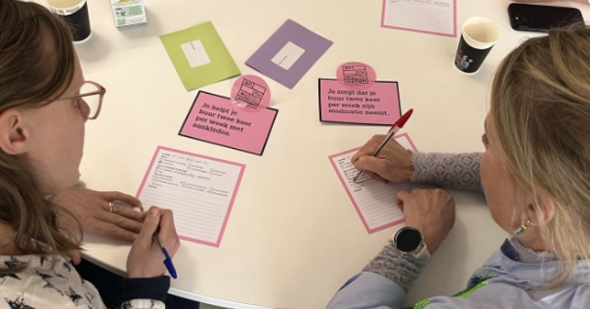 ‘Het mooie is dat je leert om een groot, complex vraagstuk klein en tastbaar te maken. morgenmakers hielp ons om zorgvuldig na te denken: waar hebben we nou echt behoefte aan? Zij stellen ook de scherpe vragen van buiten de sector, zoals: ‘Waarom doen jullie dit eigenlijk zo?’ of ‘Maak je het niet te groot?’ Dat dwingt ons om anders te kijken. De werkvormen en interventies zorgden voor energie. Betrokken zorgprofessionals vonden het inspirerend om op ontwerpdagen andere werkvormen te ervaren en collega’s van andere organisaties te ontmoeten. Bij de pilot Ruimte pakken ontstond zelfs een plek waarin professionals ervaringen en foto’s deelden. Dat gaf een gevoel van verbondenheid en bevestigde dat meer organisaties met dezelfde vraagstukken bezig zijn. Bij de pilot Doe het samen hebben we domeinoverstijgend gewerkt, met de gemeente, woningcorporatie, casemanagement dementie, welzijnsorganisaties en andere zorgorganisaties. Dat sloot aan bij bestaande samenwerkingsverbanden, zoals het programma Toekomstbestendig leven op Goeree-Overflakkee.’